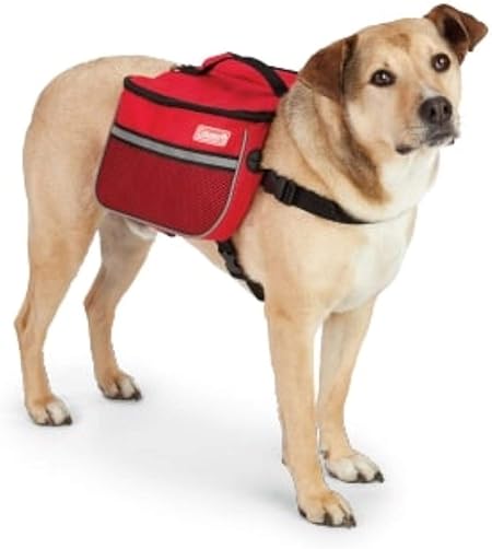 - STORAGE: Coleman dog travel bag has 2 deep well-balanced zipper compartments and 2 mesh slip pockets with reflective strips for visibility; this dog camping gear is made of ultra-strong polyester material that can hold a good amount of dog stuff like food, treats, water, first aid supplies, a toy, towel and poo bags