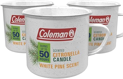 Coleman Scented Outdoor Citronella Candle in Tin Mug, Pine Scented Rustic Outdoor Camping Candle (Pack of 3)